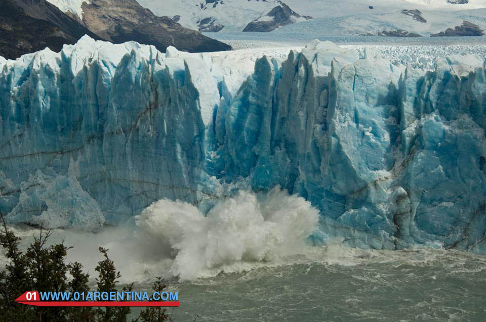 This advance of 100 meters approximately a year, generates another phenomenon of shocking beauty: the breaking of the dam that forms the Rico arm of Lake Argentino, as the advancing glacier touches the opposite coast and forms the dam that stops the passage of water. Then water seeps under the glacier and begins to undermine its base.