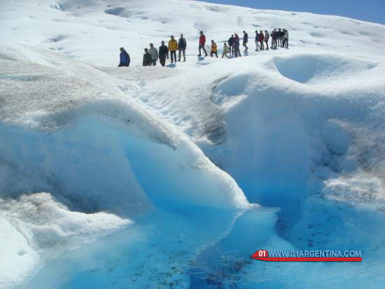 Equipped with crampons, exploring the surface of Perito Moreno, walking among the whimsical ice formations. Crampons and ice cling to allow safely walk between rare formations that seem modernist towers, lagoons clear water and deep cracks. Underfoot the river is heard. In the face feels fresh mountain air. The ice surface has rounded, soft shapes sometimes, as in a blue desert dunes; sometimes like a rugged mountain range, with sharp peaks that rise against the sky. The caves of intense and immense beauty blue challenge to overcome vertigo peer into deep sinkholes. The roar of the glacier welcomes. It is the duty, providing in his honor.